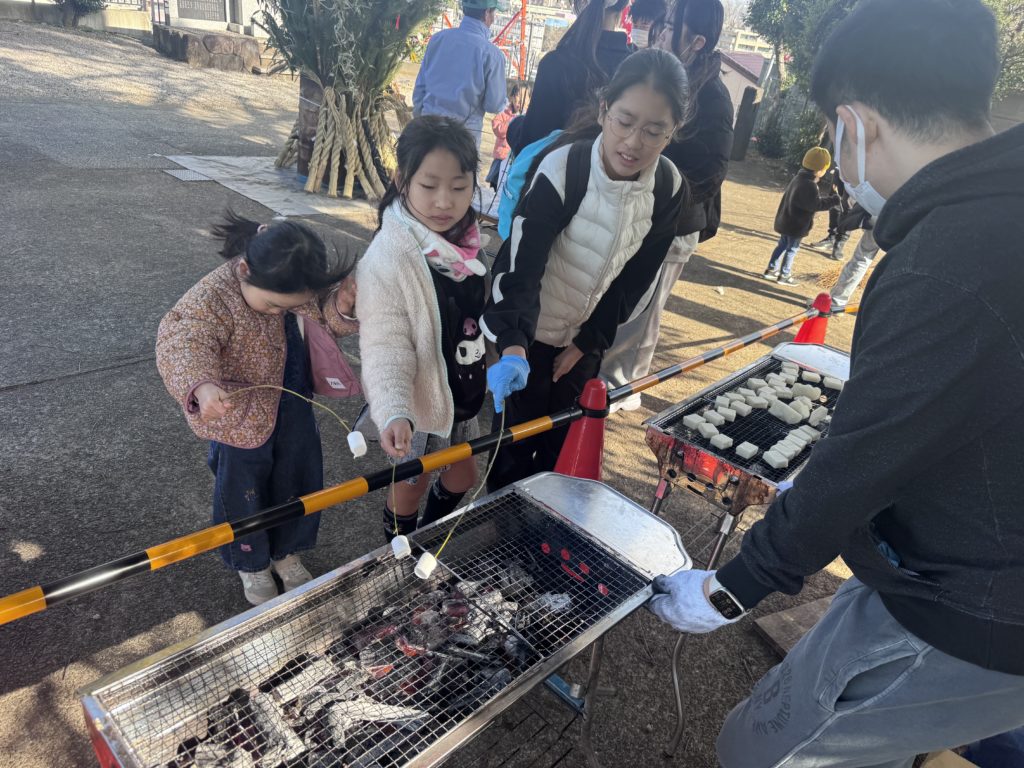 新年あけましておめでとうございます。昨年中は子ども会活動にご理解とご協力を賜り誠に有難うございました。本年の相変わらずのご協力をお願いします。新年最初のどんど焼きでしたが、強風注意報と乾燥注意報と安全にお焚き上げをできる状況ではなかったため、神社での火入れは中止し夢パークさんにお願いしました。子どもたちは、マシュマロ焼きや昔遊びを体験しとても楽しんでいただけたかと思います。また来年もお楽しみに!
